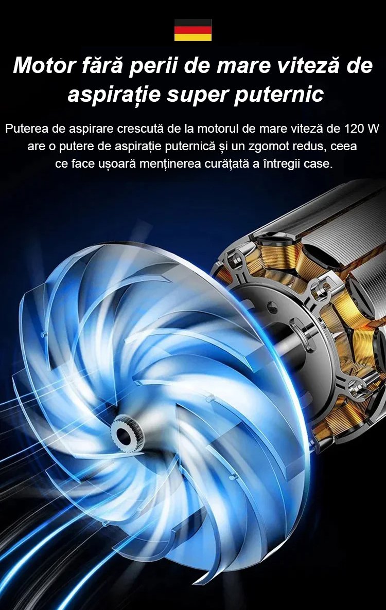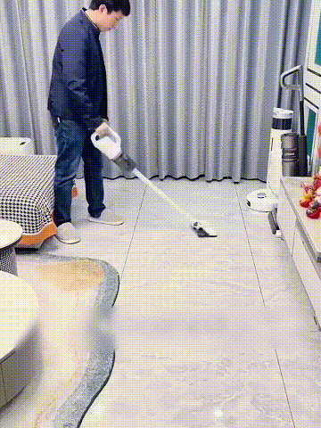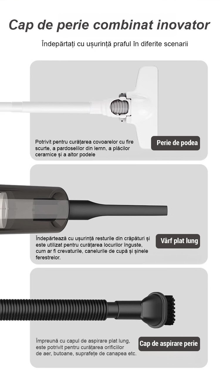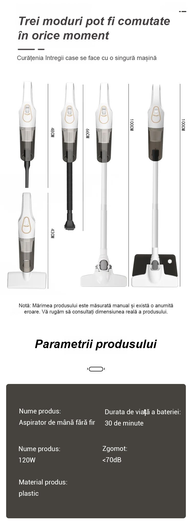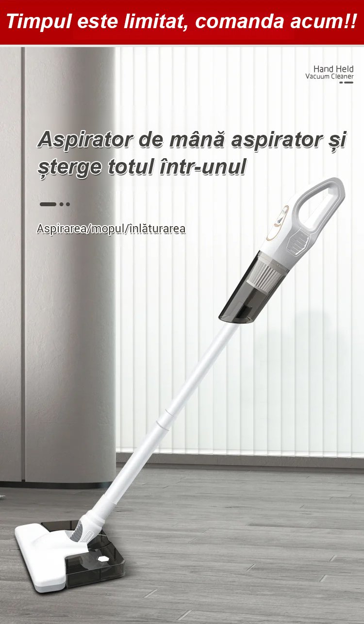 Aspirator de mână fără fir cu funcție de aspirare și ștergere.